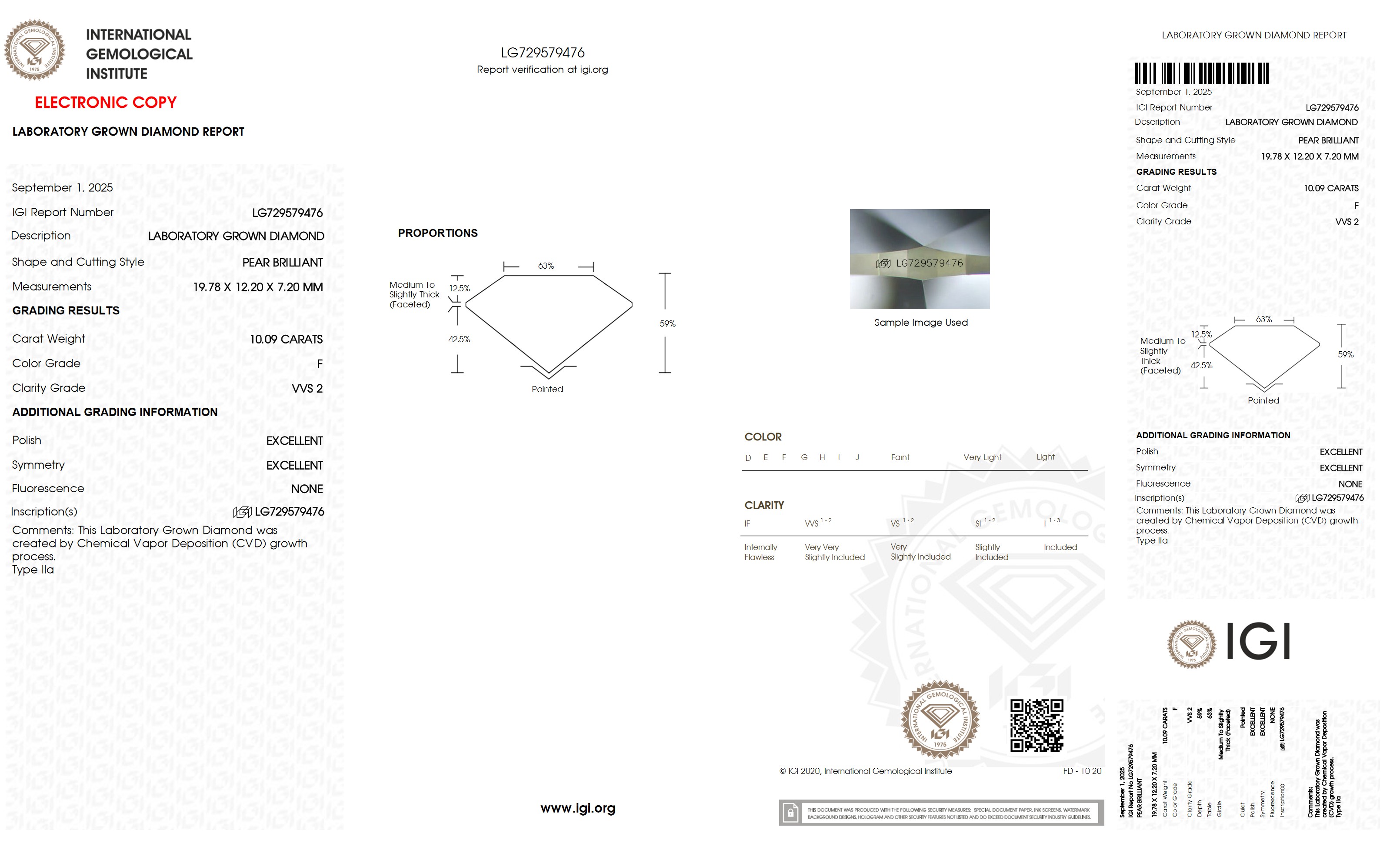 The diamond was certified by IGI. This provides you an authoritative analysis of your diamond. It also verifies that your diamond meets all the specific quality.