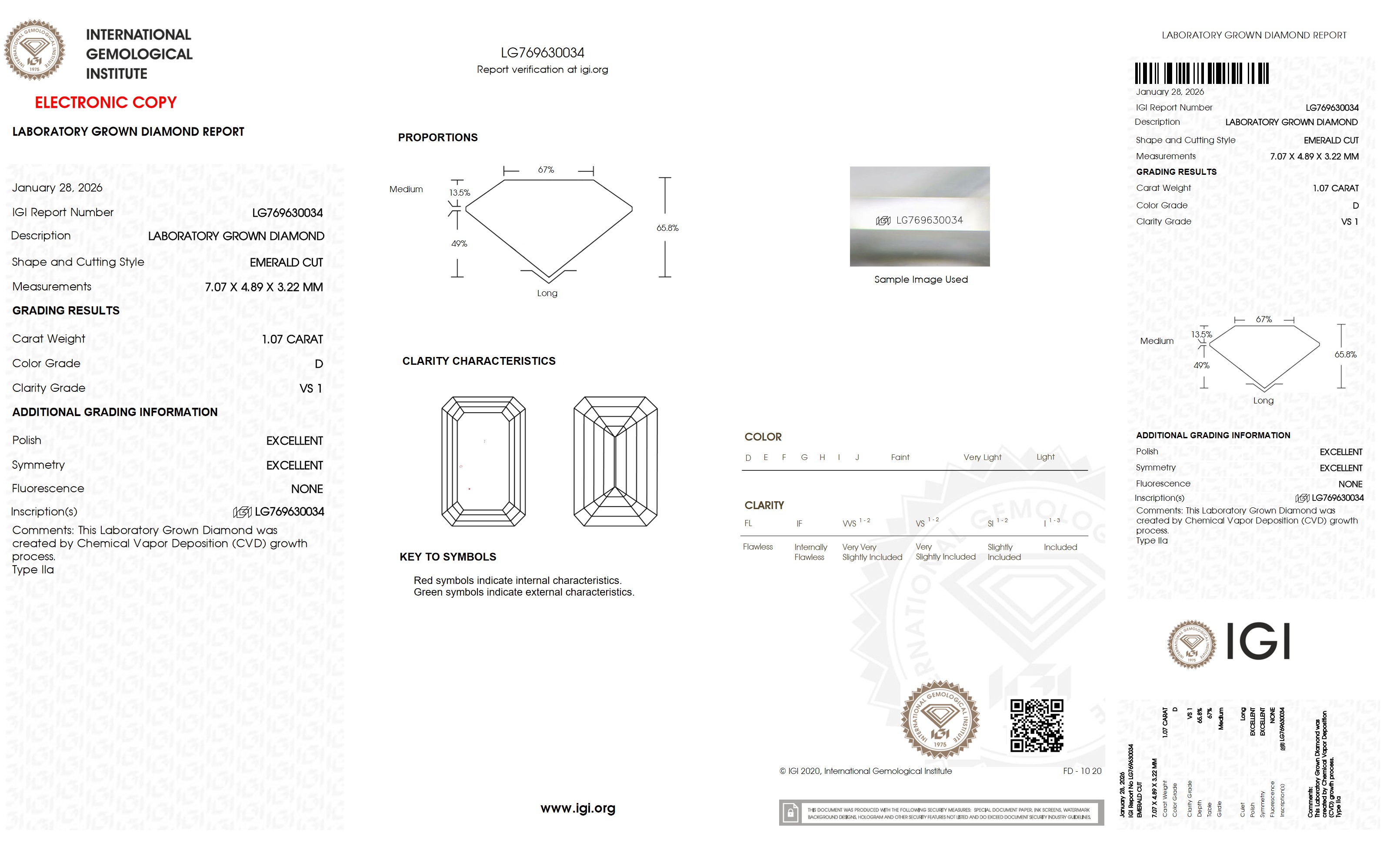 The diamond was certified by IGI. This provides you an authoritative analysis of your diamond. It also verifies that your diamond meets all the specific quality.