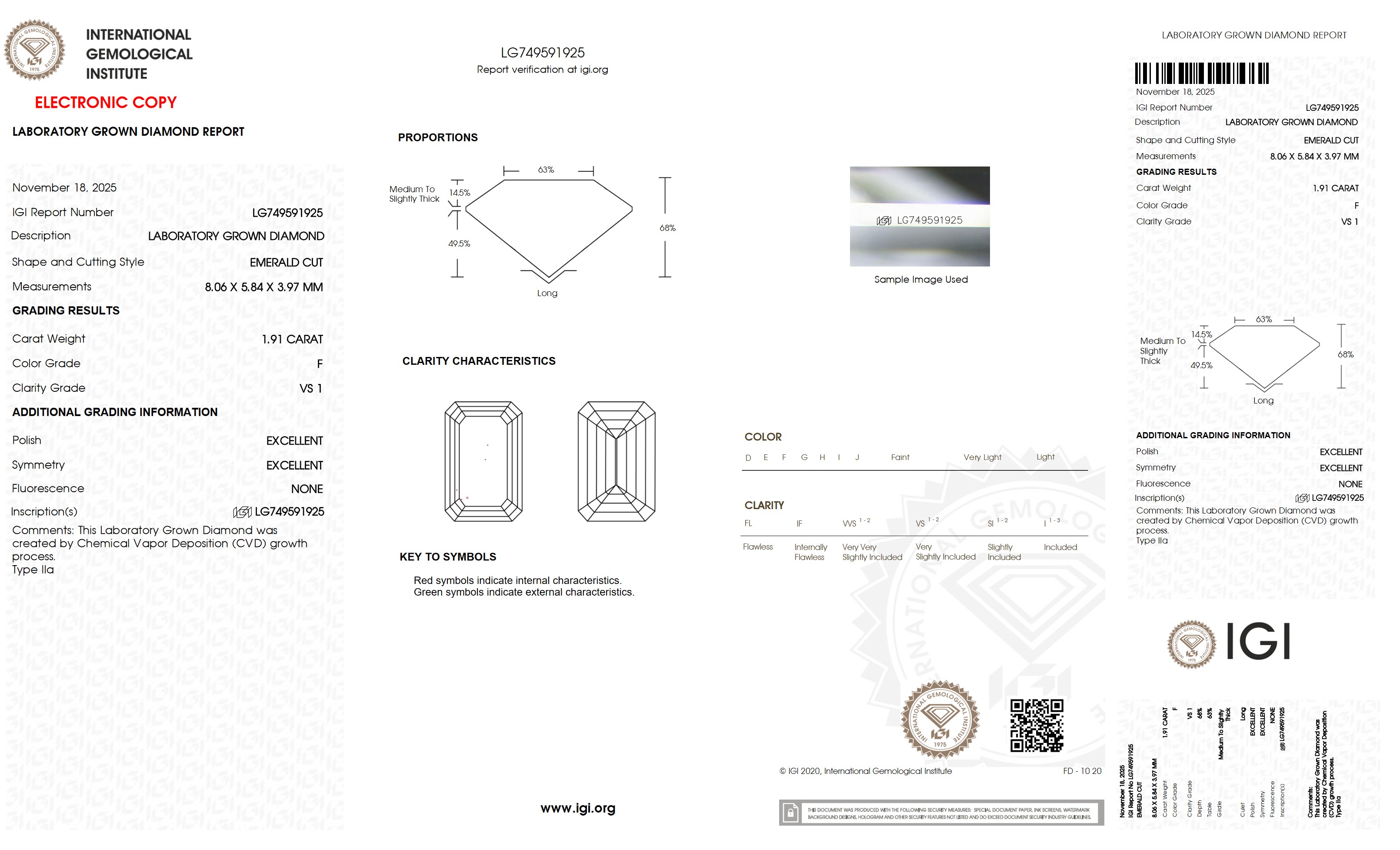 The diamond was certified by IGI. This provides you an authoritative analysis of your diamond. It also verifies that your diamond meets all the specific quality.