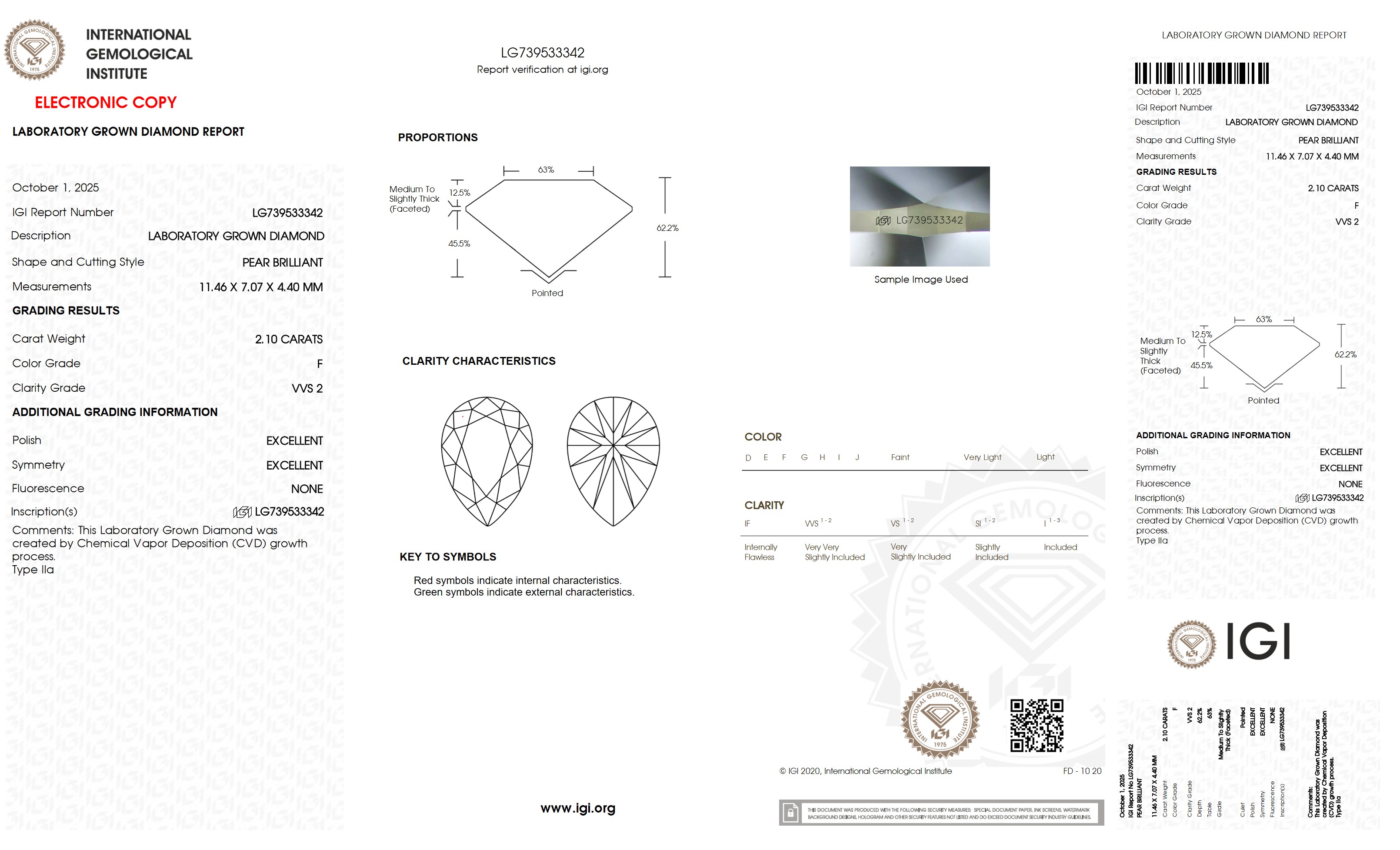 The diamond was certified by IGI. This provides you an authoritative analysis of your diamond. It also verifies that your diamond meets all the specific quality.