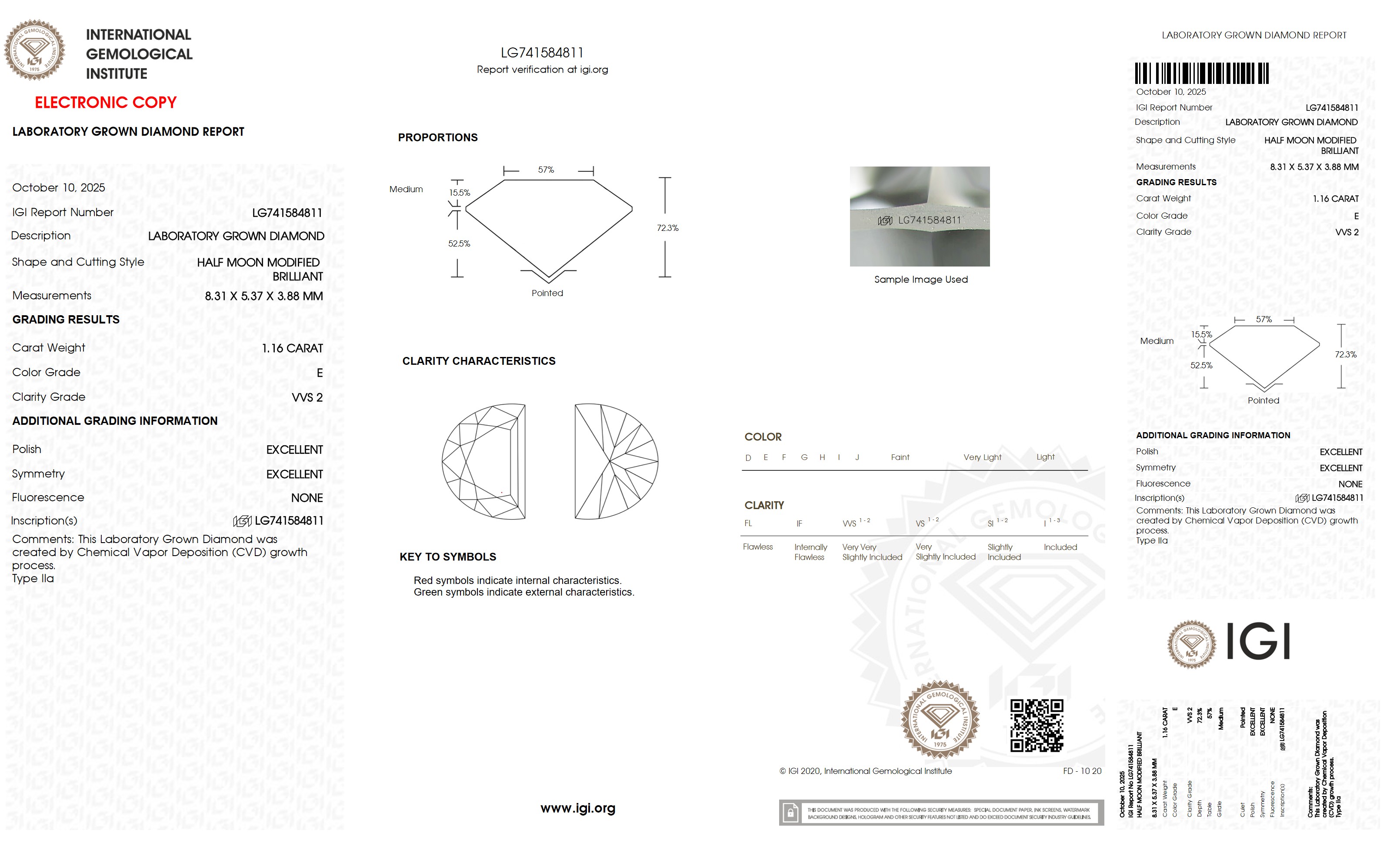 The diamond was certified by IGI. This provides you an authoritative analysis of your diamond. It also verifies that your diamond meets all the specific quality.