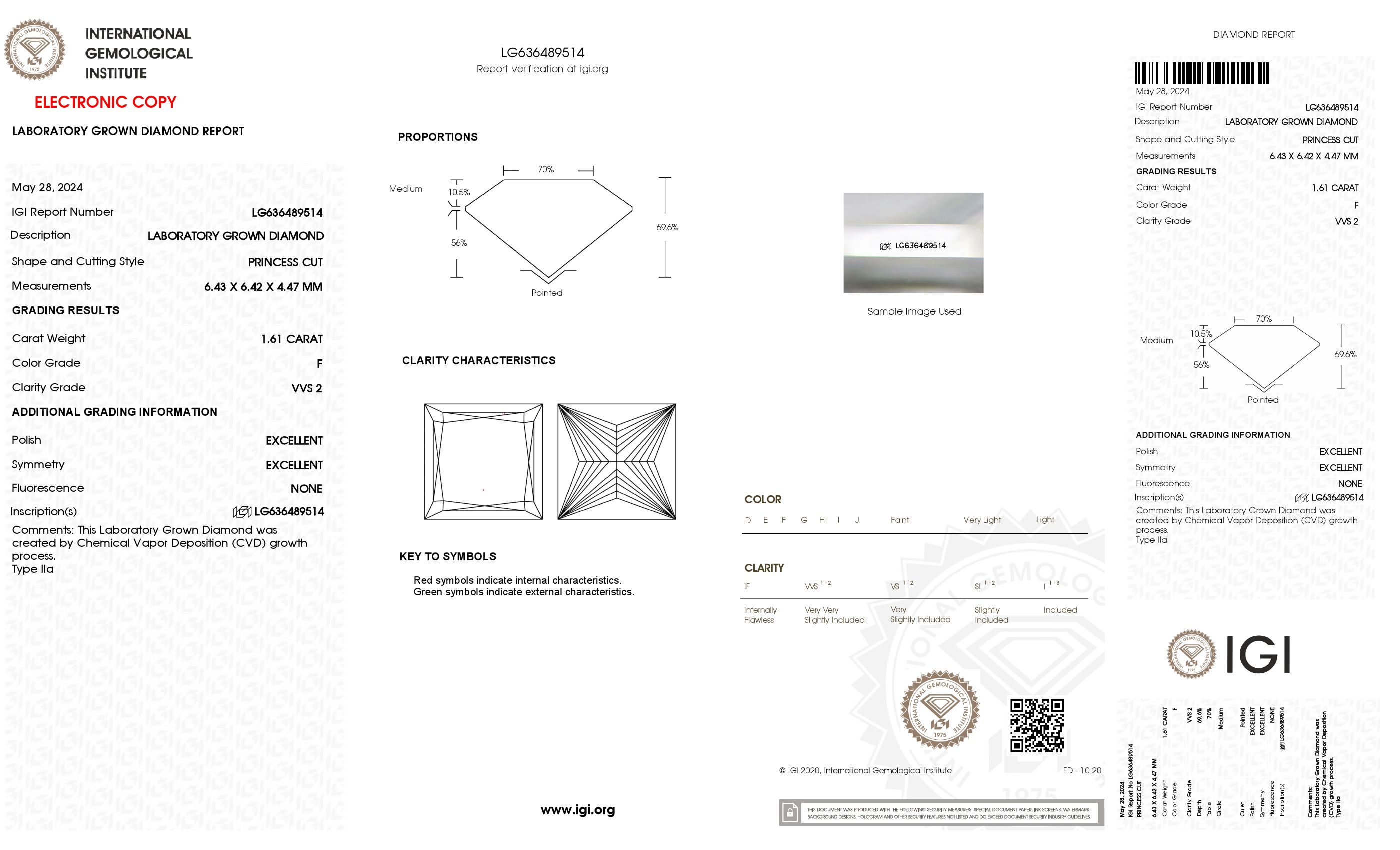 The diamond was certified by IGI. This provides you an authoritative analysis of your diamond. It also verifies that your diamond meets all the specific quality.