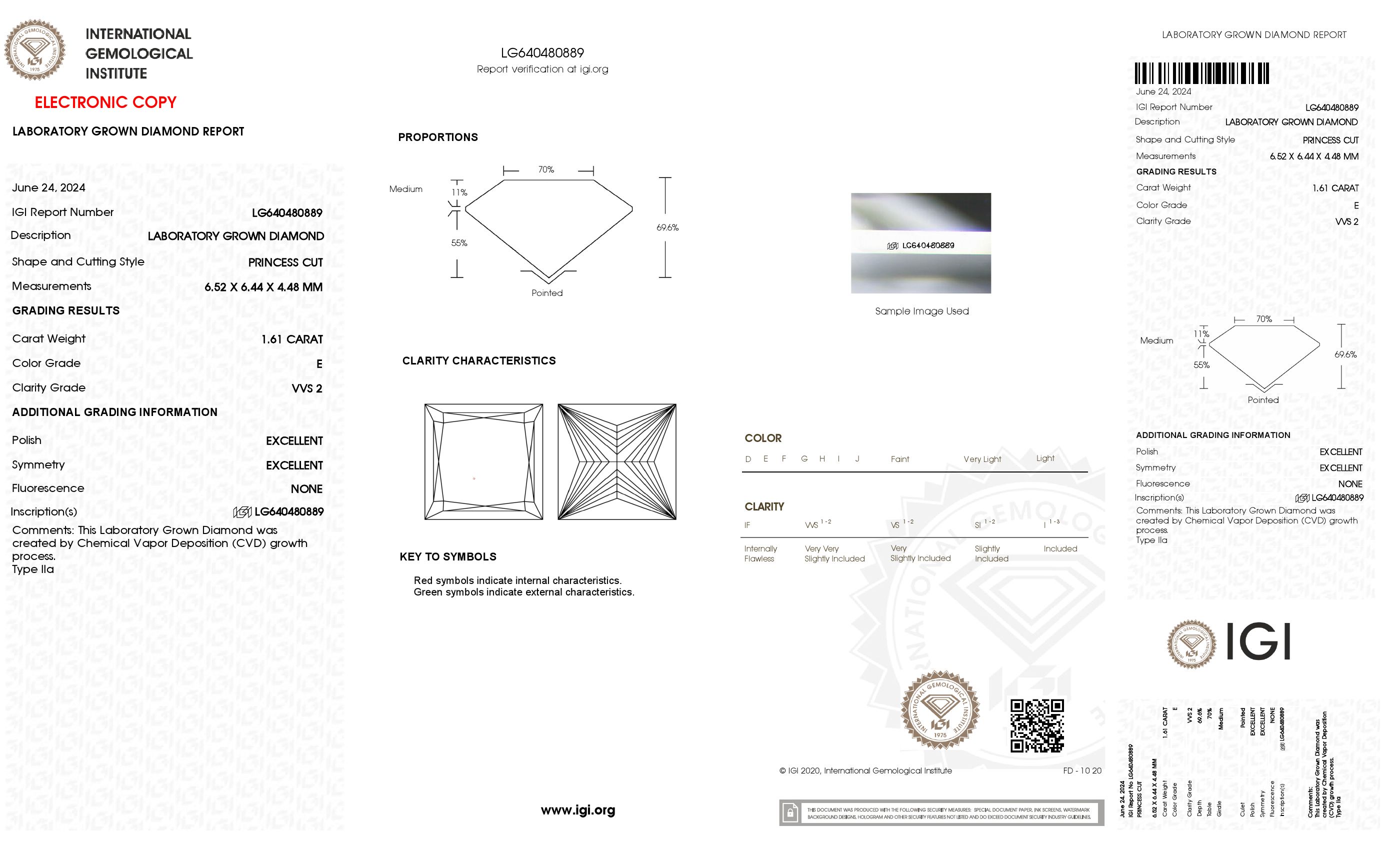 The diamond was certified by IGI. This provides you an authoritative analysis of your diamond. It also verifies that your diamond meets all the specific quality.