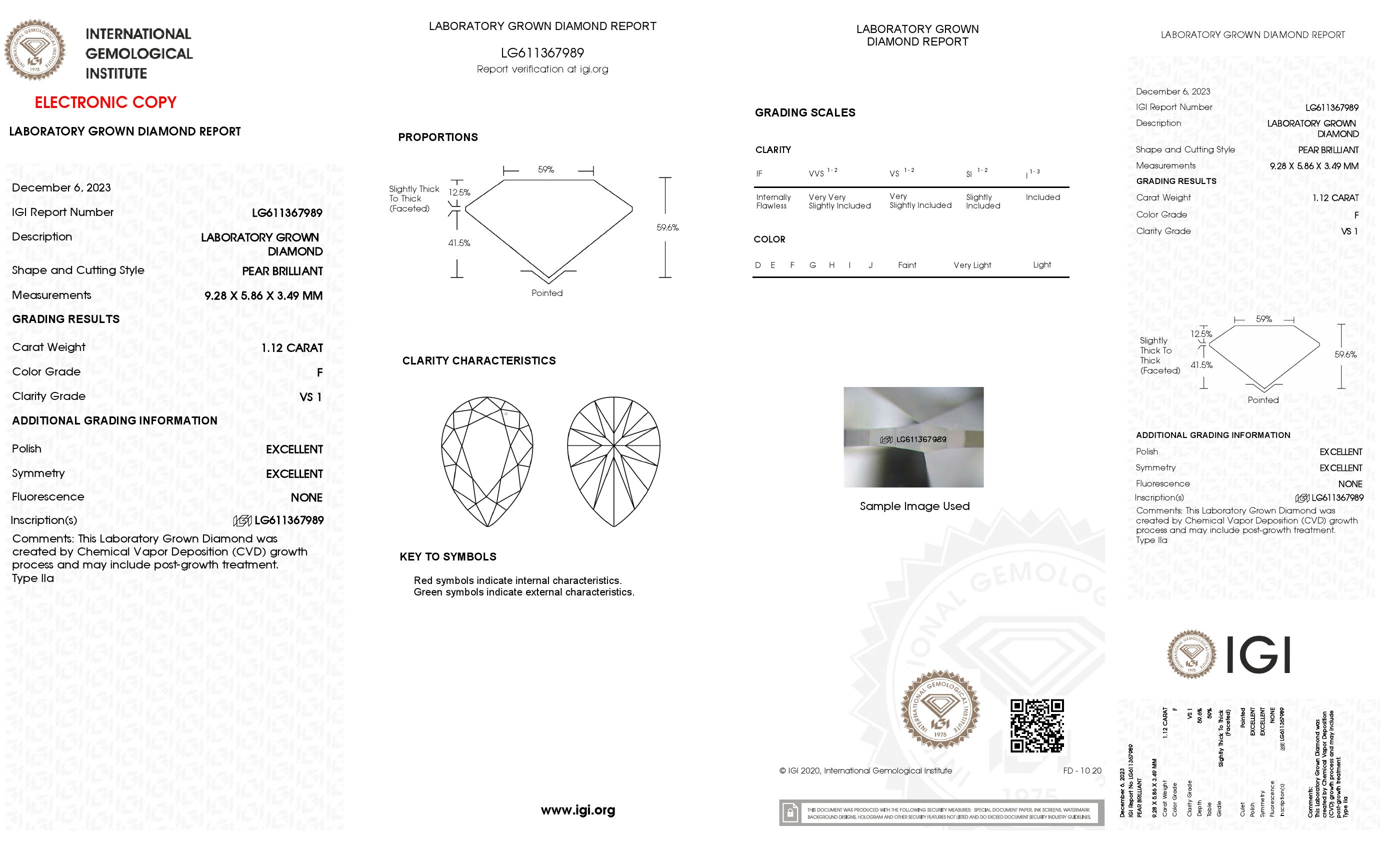 The diamond was certified by IGI. This provides you an authoritative analysis of your diamond. It also verifies that your diamond meets all the specific quality.