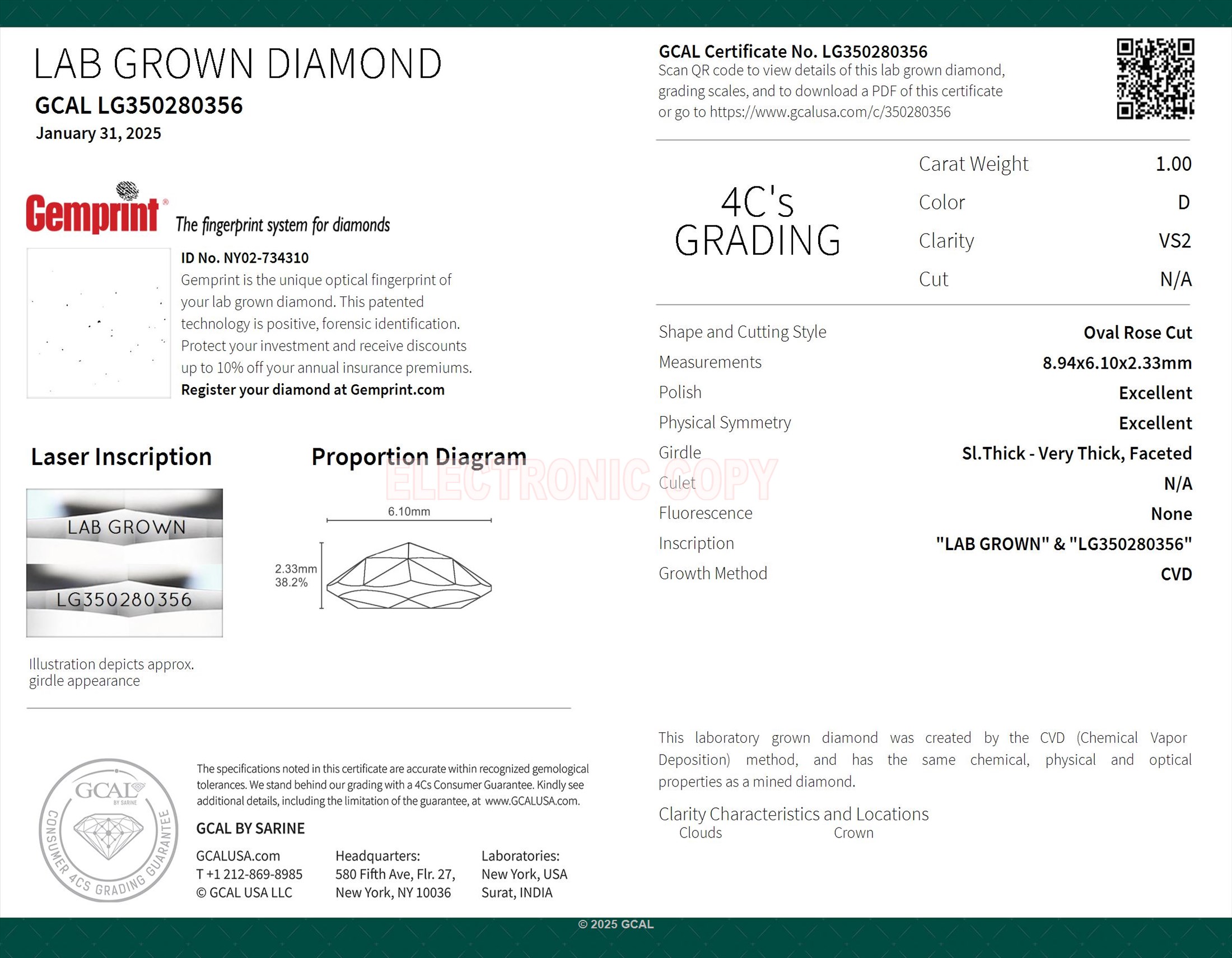 The diamond was certified by GCAL. This provides you an authoritative analysis of your diamond. It also verifies that your diamond meets all the specific quality.