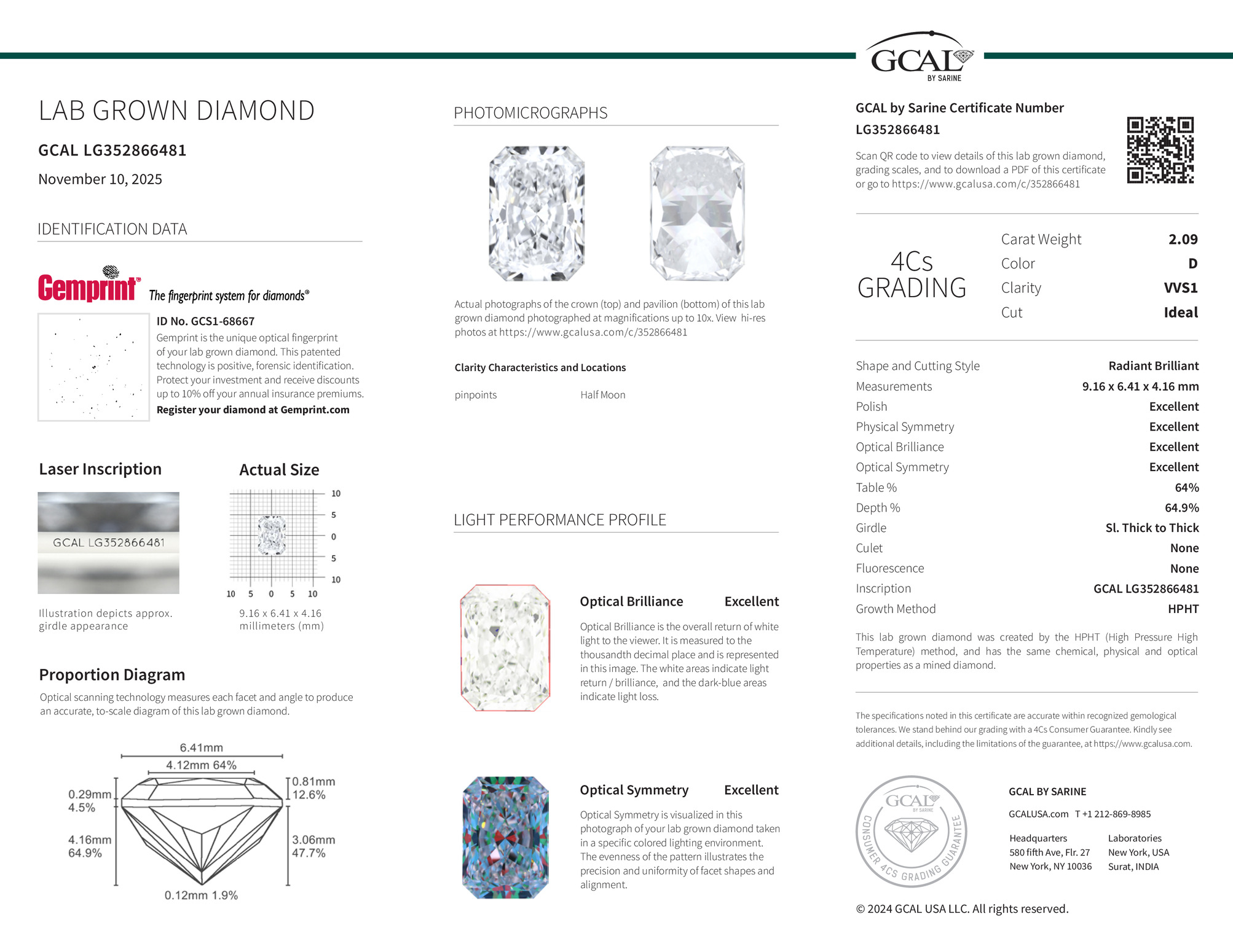 The diamond was certified by GCAL. This provides you an authoritative analysis of your diamond. It also verifies that your diamond meets all the specific quality.