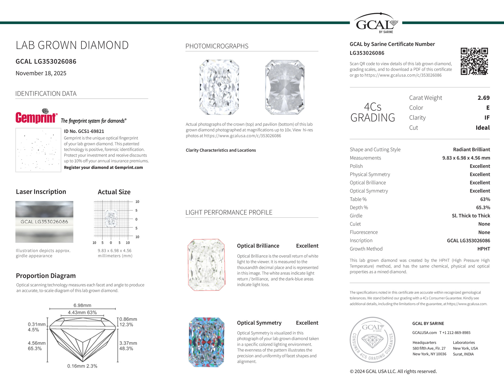 The diamond was certified by GCAL. This provides you an authoritative analysis of your diamond. It also verifies that your diamond meets all the specific quality.