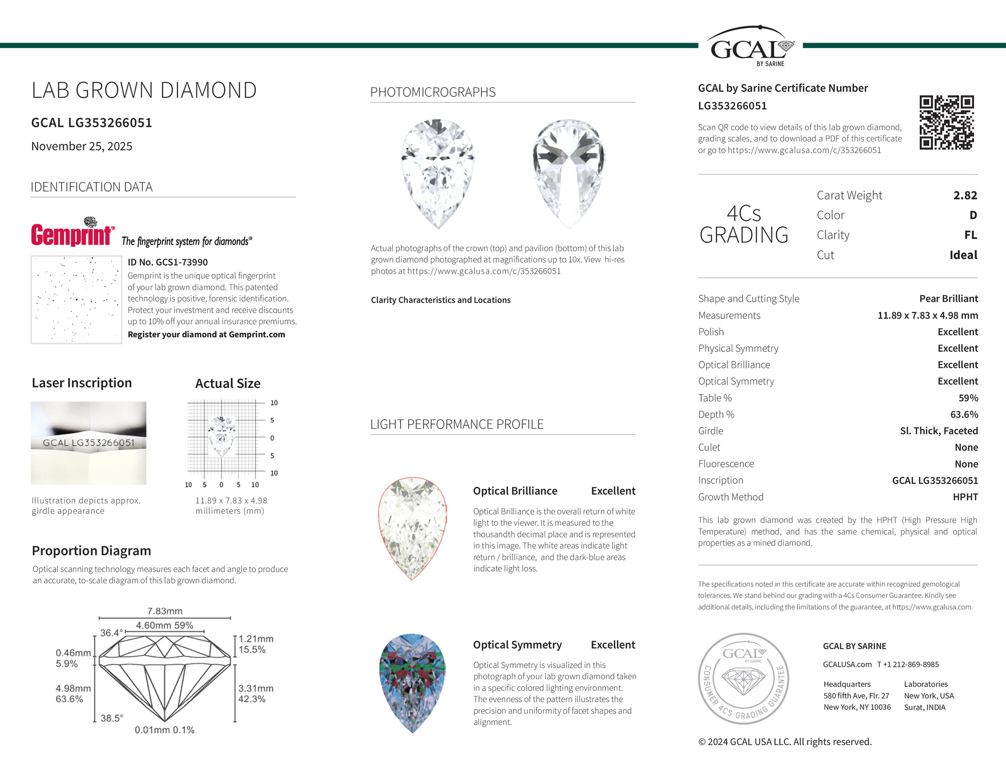 The diamond was certified by GCAL. This provides you an authoritative analysis of your diamond. It also verifies that your diamond meets all the specific quality.