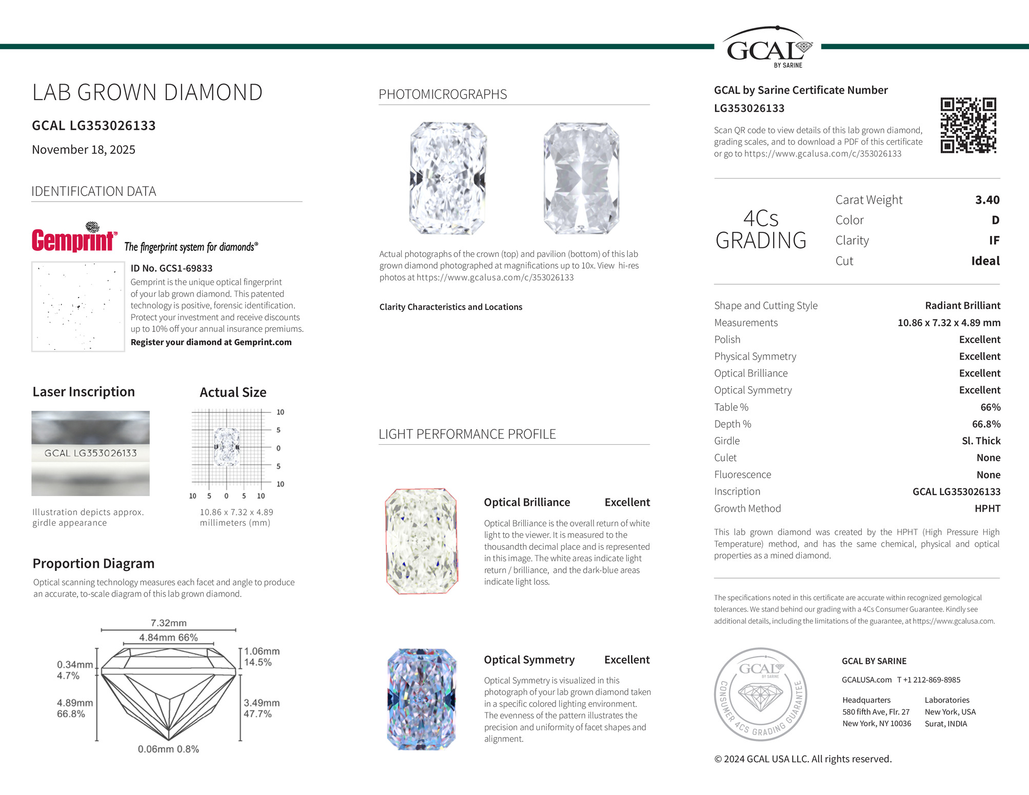 The diamond was certified by GCAL. This provides you an authoritative analysis of your diamond. It also verifies that your diamond meets all the specific quality.