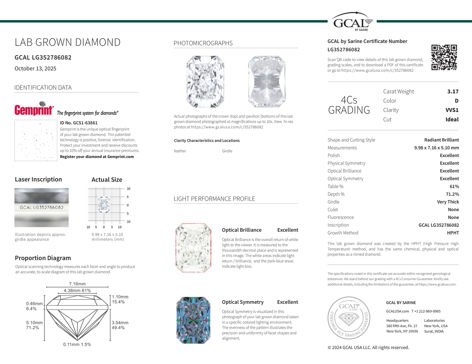 The diamond was certified by GCAL. This provides you an authoritative analysis of your diamond. It also verifies that your diamond meets all the specific quality.