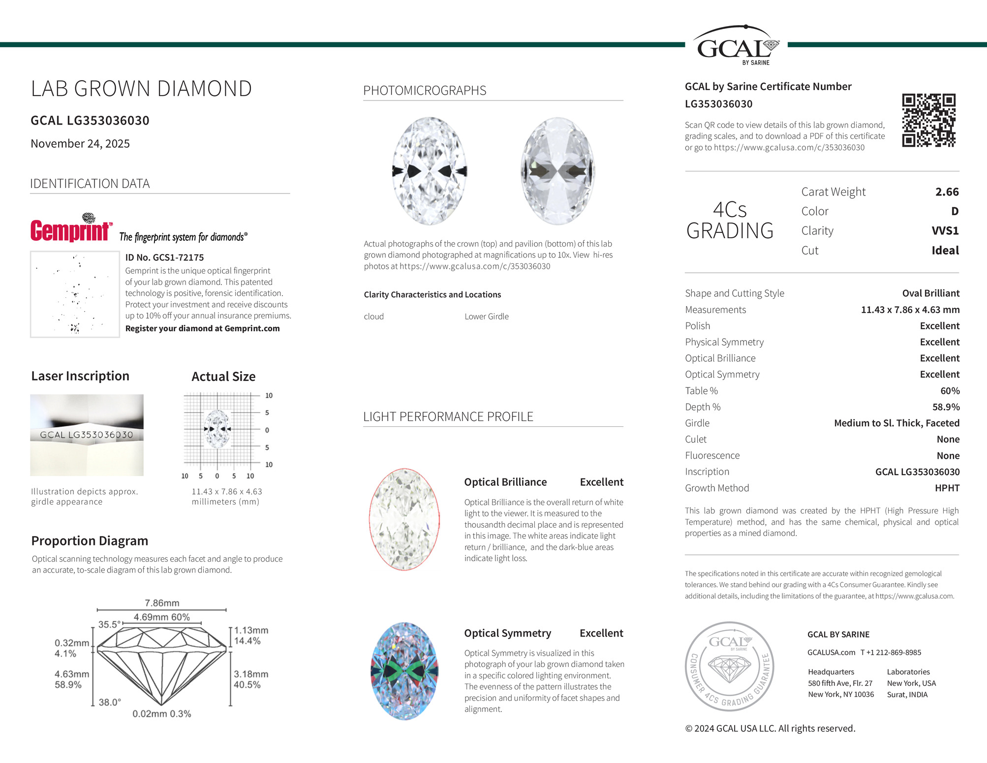 The diamond was certified by GCAL. This provides you an authoritative analysis of your diamond. It also verifies that your diamond meets all the specific quality.