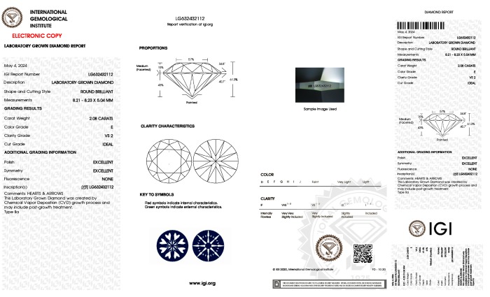 The diamond was certified by IGI. This provides you an authoritative analysis of your diamond. It also verifies that your diamond meets all the specific quality.