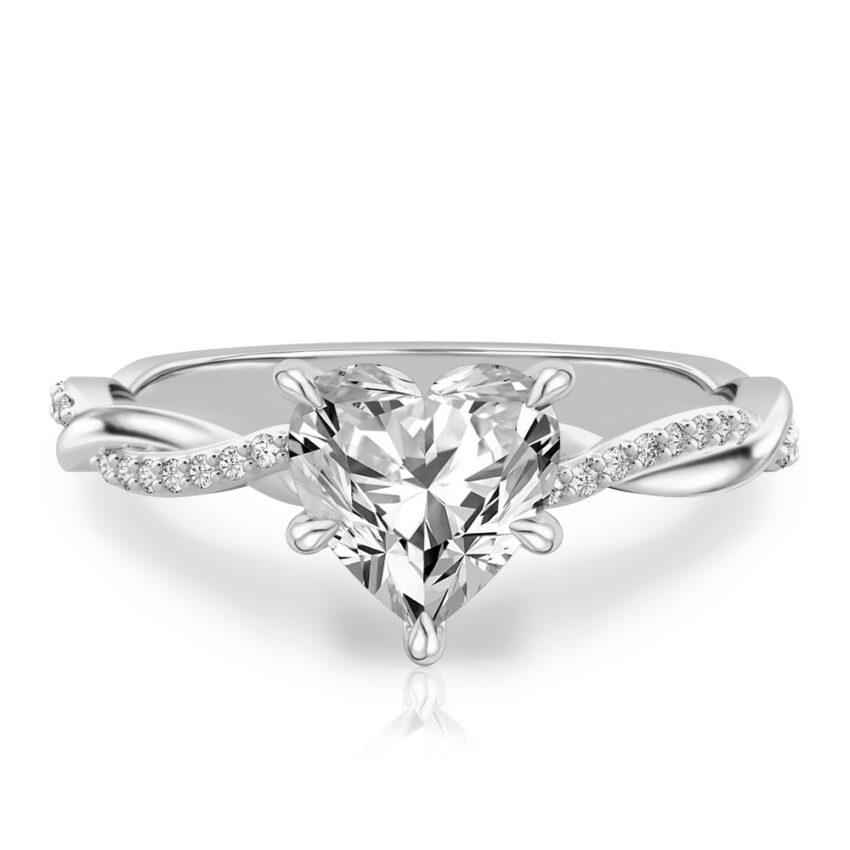 heart shape diamond twist hidden halo engagement ring in platinum
